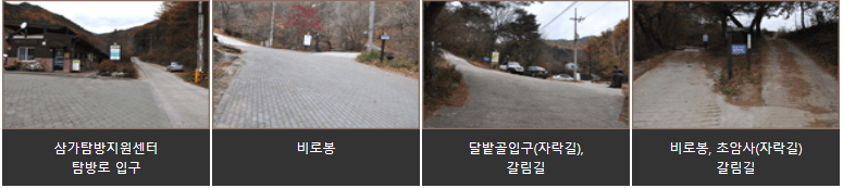 삼가동 코스는 경사가 비교적 완만하나 거리가 길어 산행 난도가 높은 코스로 산행 준비를 꼼꼼히 하여 올라가야 하는 코스이다.