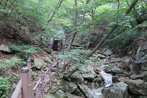 동학사와 향아교를 지나면서부터 본격적인 산행이 시작되는데 은선폭포가 나오기 전까지는 대체적으로 경사가 급하지 않은 등반하기 알맞은 탐방로가 펼쳐진다.