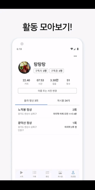 등산하면서 남기고 싶은 사진들 또는 동영상, 등산 여행을 더욱 재미를 더해 중 수 있는 등산 어플인 등산 기록하기 올라 입니다.