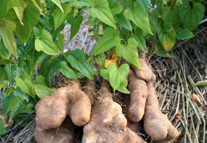 고구마풀의 뿌리는 일반적으로 긴 깊은 토막 모양을 하고 있으며, 밝은 베이지나 연한 황색을 띠고 있습니다. 그 자체로는 식용으로 섭취되거나, 건조하여 분말 형태로 만들어 의약품으로 사용됩니다. 또한 고구마풀은 탄수화물, 단백질, 식이 섬유질, 미네랄, 비타민 등 다양한 영양소를 함유하고 있어 건강에 좋은 식재료로 알려져 있습니다.